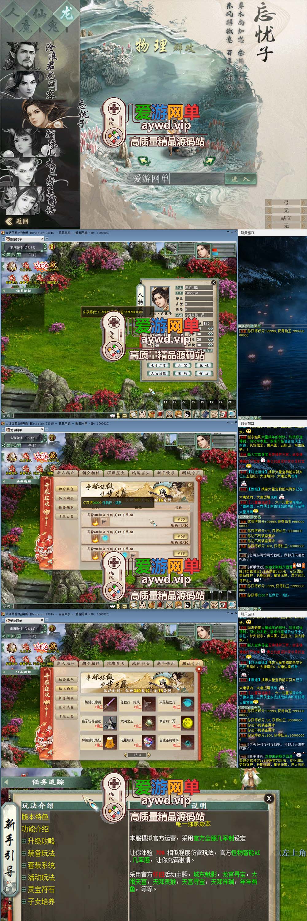 爱游网单亲测【大话西游】碧海仿官5族单机版内置多开任务助手炼化助网页GM充值后台虚拟机一键端视频安装教学