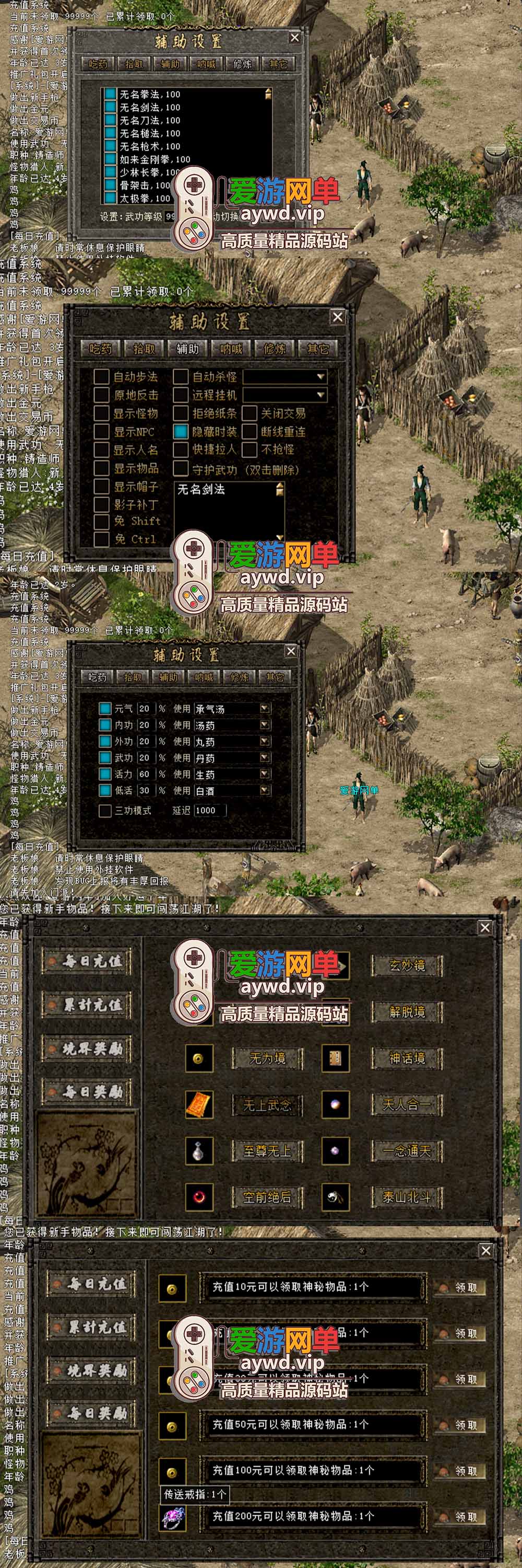 本服为重返三层版本,武功经验2000倍,浩然2000倍,辅助200倍 无变态装备,长久耐玩。